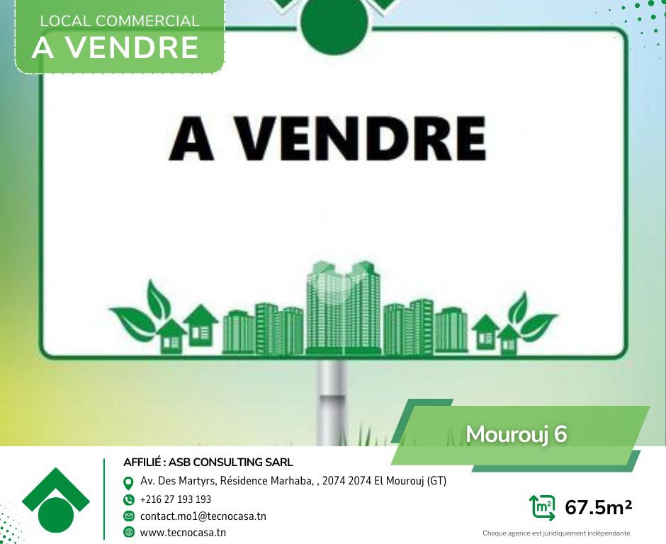 Local commercial d’une superficie de 67,5 m², idéalement situé en 2ème position sur la route principale de Mourouj 6.